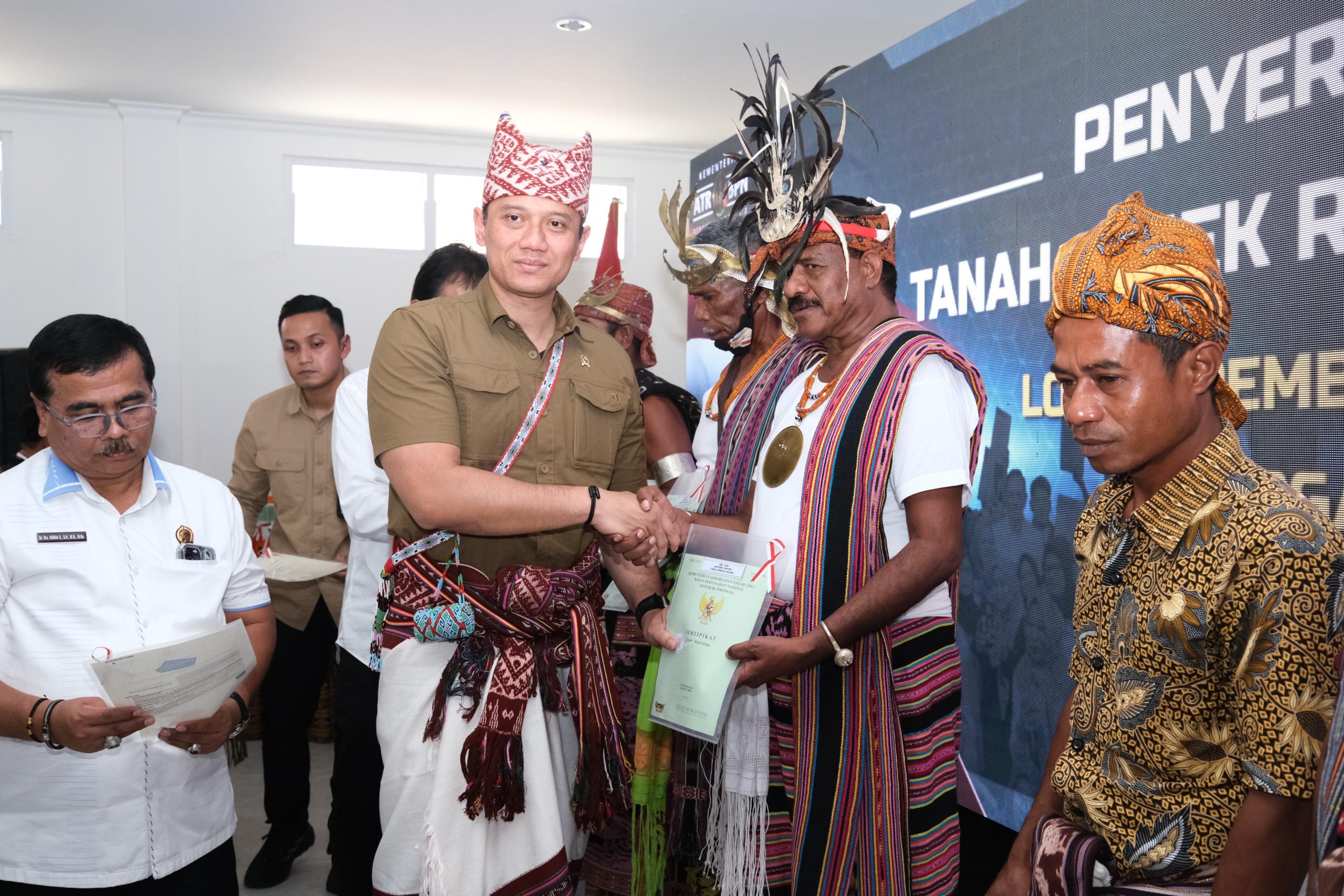 Lima ratus dari 2.100 warga yang berhak, menerimanya langsung dari Menteri Agraria dan Tata Ruang/Kepala Badan Pertanahan Nasional (ATR/BPN), Agus Harimurti Yudhoyono (AHY) dalam acara sederhana di Kapela Desa Oebola Dalam, Kec. Fatuleu, Kab. Kupang, NTT (14/9).