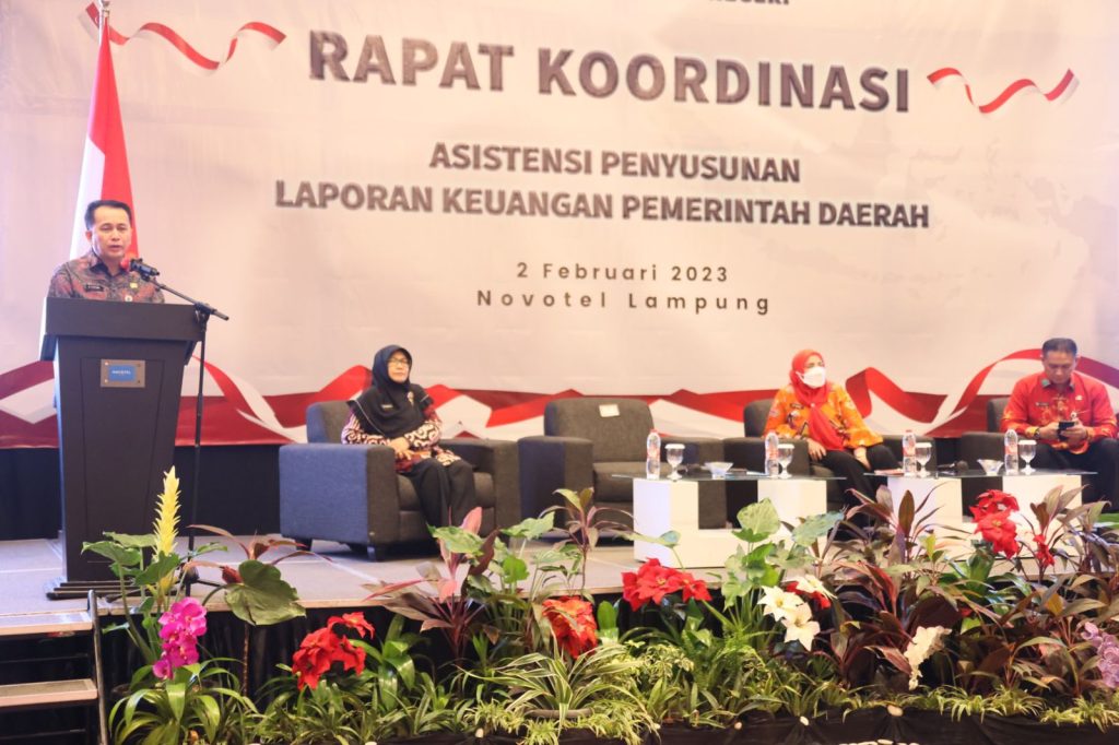 Bandar Lampung, (DelikAsia.com) | Kementerian Dalam Negeri (Kemendagri) menggelar Rapat Koordinasi (Rakor) Penyusunan Laporan Keuangan Pemerintah Daerah (LKPD) di Hotel Novotel Kota Bandar Lampung, Kamis (2/2/2023). Rakor ini digelar untuk menguatkan komitmen dalam mewujudkan akuntabilitas dan transparansi pertanggungjawaban pengelolaan keuangan daerah. Kegiatan yang berlangsung secara hybrid ini diikuti pemerintah provinsi, kabupaten, dan kota seluruh Indonesia.