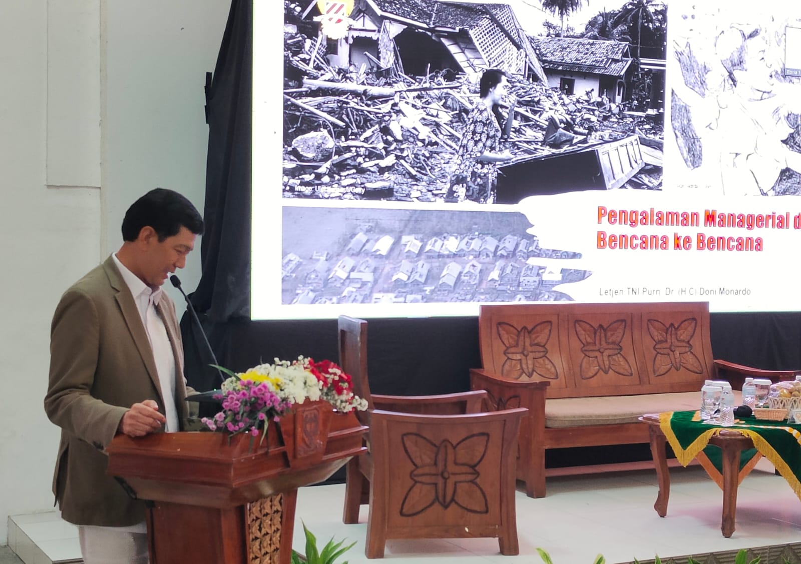 Dalam seminar yang berlangsung di Aula Museum Kebangkitan Nasional (Gedung Stovia) itu, Doni kebagian sub tema “Pengalaman Managerial dari Bencana ke Bencana”.