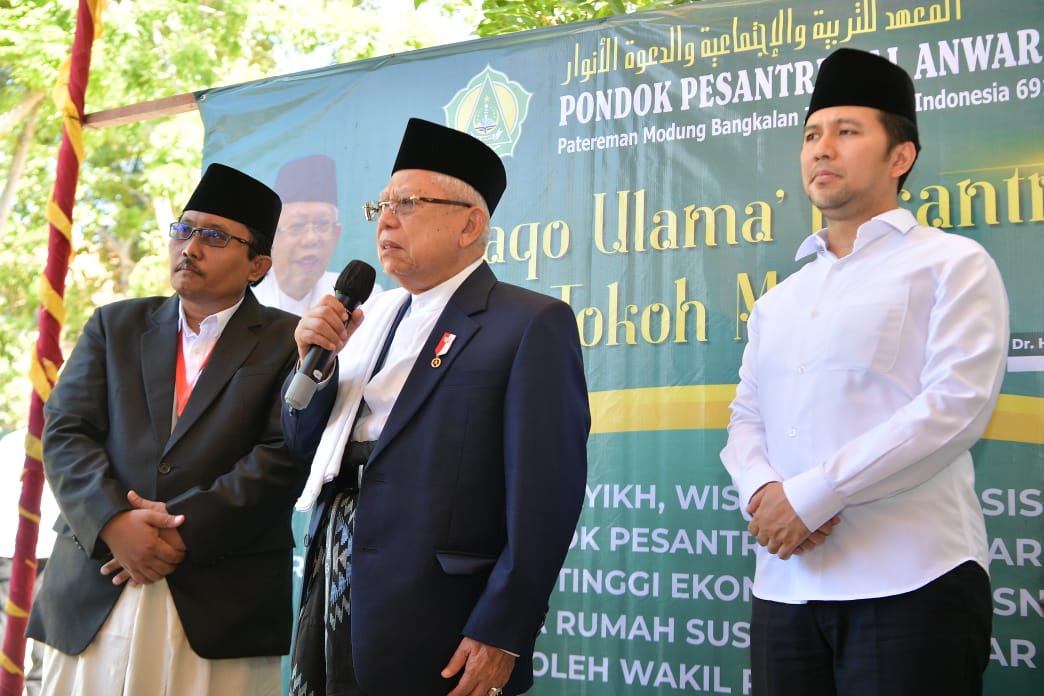 Selain Wakil Gubernur Jawa Timur, hadir mendampingi Wapres dalam keterangan pers ini Ketua Yayasan Pondok Pesantren Al Anwar, K.H. M. Muchlis Muhsin.[RED/NN/AS, BPMI – Setwapres].