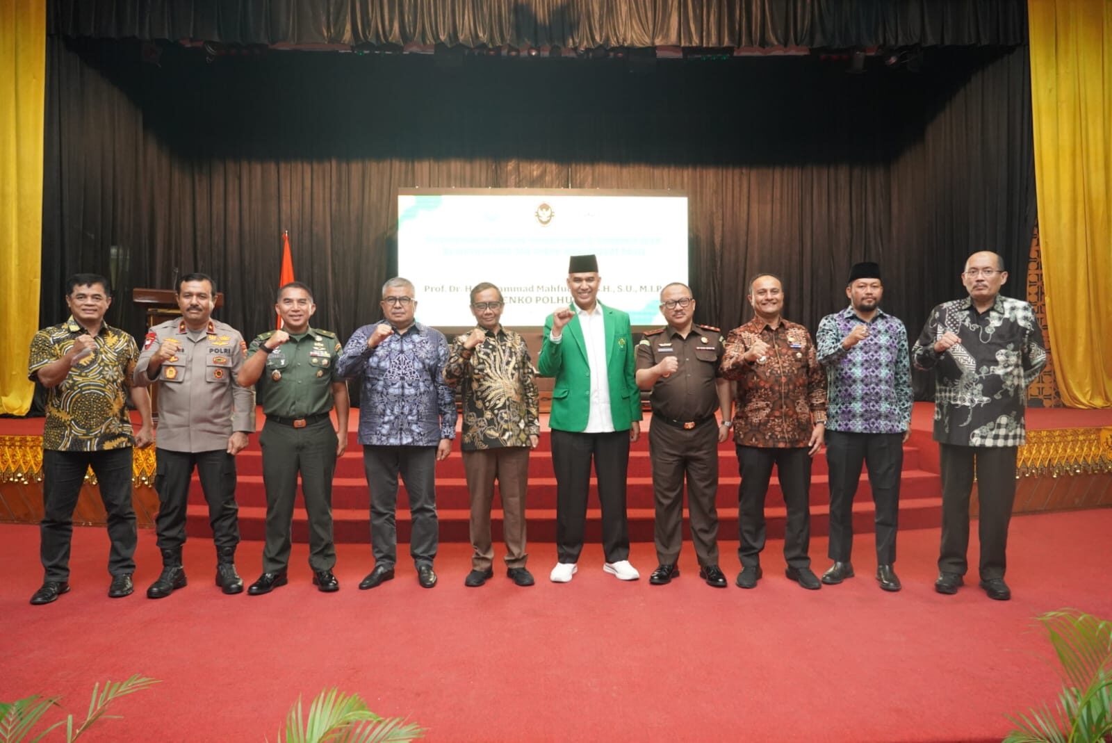 Mengakhiri sambutannya Prof, Dr. Mohammad Mahfud MD, S.H, S.U, M.I.P. mengajak semuanya untuk mengatur Pemerintahan melalui Pemilu dari sudut instrumen Kelembagaan dan peraturan Perundang-Undangan.[S4R/Dispenad].