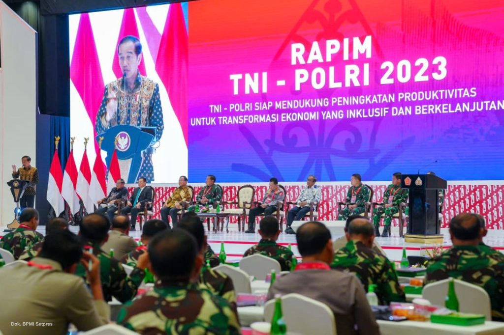 Rapim TNI – Polri yang mengangkat tema “TNI – Polri Siap Mendukung Peningkatan Produktivitas Untuk Transformasi Ekonomi yang Inklusif dan Berkelanjutan”, dihadiri oleh 431 peserta dari 199 pejabat Polri dan 232 pejabat TNI.
