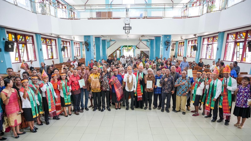 DelikAsia.com, (Papua) |  Wakil Menteri Agraria dan Tata Ruang/Wakil Kepala Badan Pertanahan Nasional (ATR/BPN), Raja Juli Antoni baru saja menyerahkan sertipikat bagi simbol toleransi agama di Papua, pada Minggu (26/11/2023). Simbol tersebut ialah dua rumah ibadah, yakni gereja dan masjid yang berdiri berdekatan di Kampung Yuta Raharja Kabupaten Keerom, Papua.