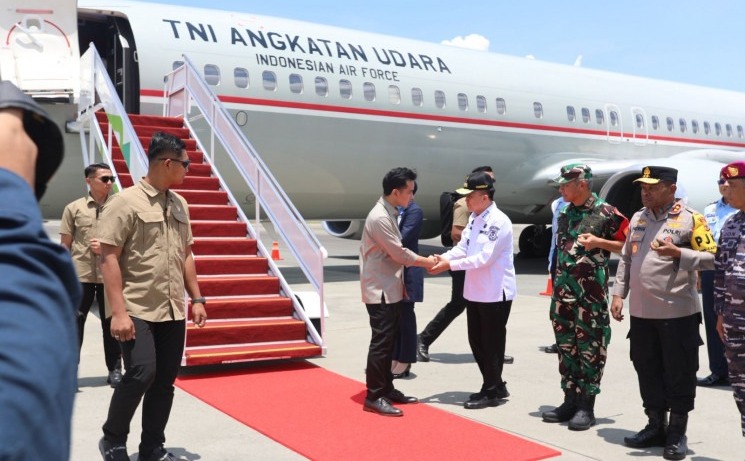 Delik Asia, (Jayapura) | Penjabat (Pj) Gubernur Papua Agus Fatoni menyambut kedatangan Wakil Presiden (Wapres) Gibran Rakabuming Raka beserta rombongan terbatas di Bandara International Sentani, Jayapura, Papua, Rabu (17/09/2025).