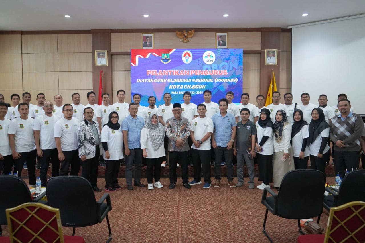 Cilegon, (DelikAsia.com) | Wali Kota Cilegon Helldy Agustian menghadiri acara Pelantikan dan Rapat Kerja Pengurus Ikatan Guru Olahraga Nasional (IGORNAS) Kota Cilegon masa jabatan 2022 – 2026, di Aula Setda II Kota Cilegon, Sabtu (18/02). Pelantikan dilakukan secara langsung oleh Ketua IGORNAS Provinsi Banten Yepi Wahyu Wandiana.