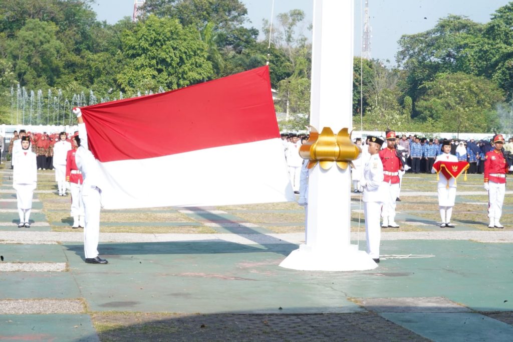 Delik Asia, (Cilegon) | Wali Kota Cilegon, Robinsar, memimpin langsung Upacara Peringatan HUT ke-80 RI yang digelar di Alun-Alun Kota Cilegon, Minggu (17/8). Upacara diikuti ratusan peserta dari unsur pemerintahan, pelajar, hingga masyarakat umum.