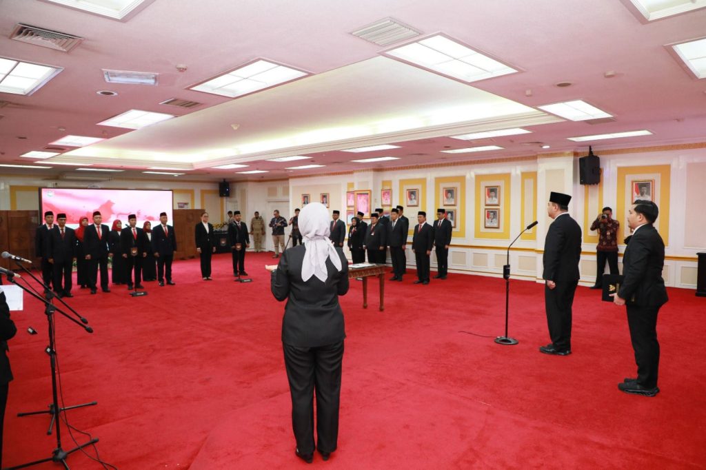 Dokumentasi: Pelaksana Tugas (Plt.) Sekretaris Jenderal (Sekjen) Kementerian Dalam Negeri (Kemendagri) Tomsi Tohir, saat melantik satu pejabat pimpinan tinggi pratama dan sembilan penjabat administrator di lingkungan Kemendagri dan Badan Nasional Pengelola Perbatasan (BNPP). DelikAsia.com, (Jakarta) | Pelaksana Tugas (Plt.) Sekretaris Jenderal (Sekjen) Kementerian Dalam Negeri (Kemendagri) Tomsi Tohir melantik satu pejabat pimpinan tinggi pratama dan sembilan penjabat administrator di lingkungan Kemendagri dan Badan Nasional Pengelola Perbatasan (BNPP). Pelantikan berlangsung di Ruang Sidang Utama Kantor Pusat Kemendagri, Jakarta, Jumat (13/9/2024).