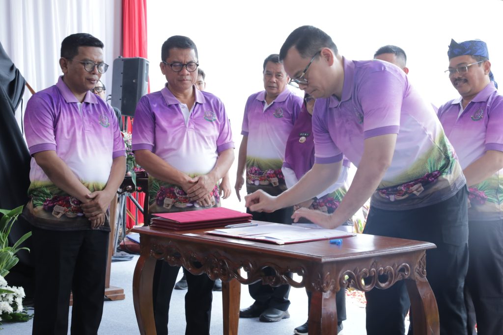 Delik Asia, (Tangerang) | Menteri Desa dan Pembangunan Daerah Tertinggal (Mendes PDT) Yandri Susanto menghadiri penandatanganan Memory of Understanding (MoU) atau Nota Kesepahaman Tentang Pemberdayaan Lahan dan Badan Usaha Milik Desa melalui Pola Tanam serta Program Jaksa Garda Desa di Desa Sarakan, Kecamatan Sepatan, Kabupaten Tangerang, Rabu (25/6/2025).