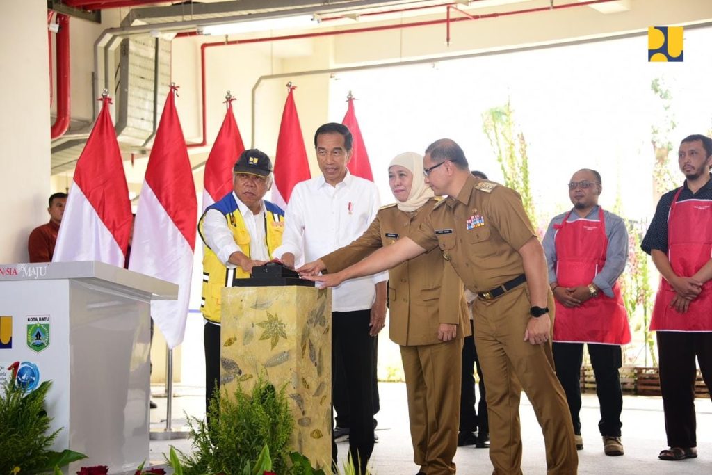 DelikAsia.com, (Kota Batu) | Menteri Pekerjaan Umum dan Perumahan Rakyat (PUPR) Basuki Hadimuljono mendampingi Presiden Joko Widodo meresmikan Pasar Induk Among Tani Kota Batu, Jawa Timur pada Kamis (14/12/2023).