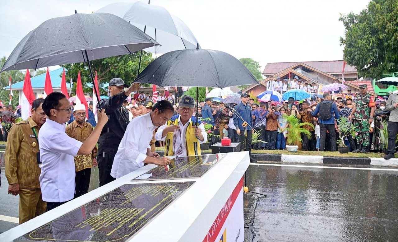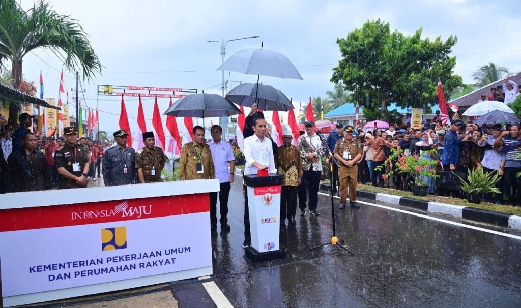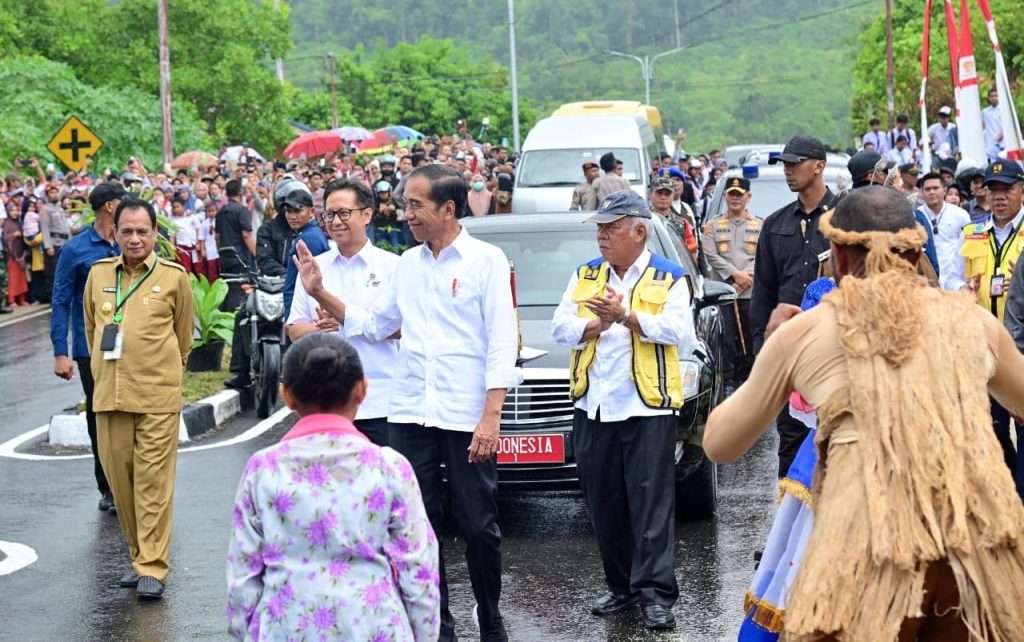 Dokumentasi: Presiden Joko Widodo (Jokowi) didampingi Menteri Pekerjaan Umum dan Perumahan Rakyat (PUPR) Basuki Hadimuljono, saat meresmikan perbaikan 15 ruas jalan sepanjang 147 km yang ditangani dengan Inpres Jalan Daerah (IJD) dengan biaya sebesar Rp330 M yang tersebar di 9 Kabupaten di Provinsi Sulawesi Tengah (Sulteng). DelikAsia.com, (Banggai Kepulauan) | Presiden Joko Widodo (Jokowi) didampingi Menteri Pekerjaan Umum dan Perumahan Rakyat (PUPR) Basuki Hadimuljono meresmikan perbaikan 15 ruas jalan sepanjang 147 km yang ditangani dengan Inpres Jalan Daerah (IJD) dengan biaya sebesar Rp330 M yang tersebar di 9 Kabupaten di Provinsi Sulawesi Tengah (Sulteng). Peresmian dilakukan terpusat di ruas Jalan Dalam Kota Salakan Kepulauan Banggai pada Selasa (26/3/2024).