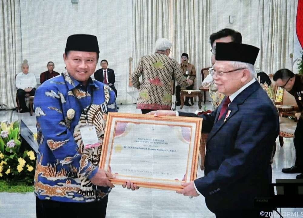 Penghargaan diterima Wakil Gubernur Jawa Barat Uu Ruzhanul Ulum dan diserahkan Wakil Presiden Ma’ruf Amin di Istana Wakil Presiden RI, DKI Jakarta, Senin (14/8/23).