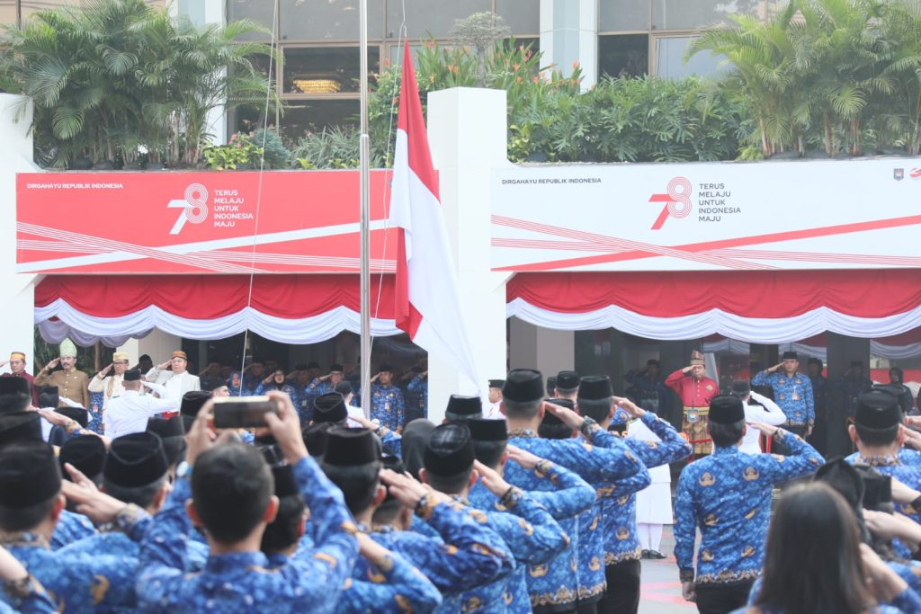 Jakarta, (DelikAsia.com) | Sekretaris Jenderal (Sekjen) Kementerian Dalam Negeri (Kemendagri) Suhajar Diantoro memimpin Upacara Peringatan Hari Ulang Tahun (HUT) Ke-78 Kemerdekaan Republik Indonesia (RI) di halaman Gedung A Kantor Pusat Kemendagri, Jakarta Pusat, Kamis (17/8/2023).
