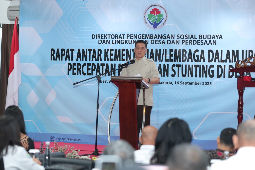 Demikian dikatakan Wakil Menteri Desa dan Pembangunan Daerah Tertinggal (Wamendes PDT) Ahmad Riza Patria dalam rapat antar kementerian/lembaga dalam upaya percepatan penurunan stunting di desa yang digelar di Best Western Hotel, Jakarta, Selasa (16/9/2025)