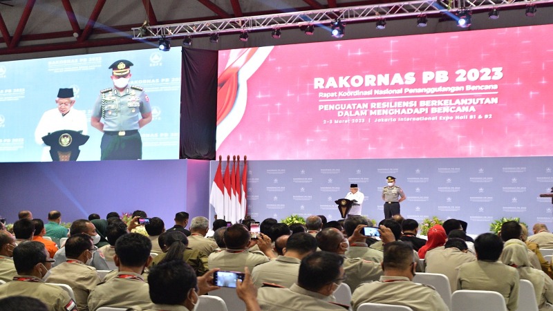 “Pelayanan prima untuk melindungi masyarakat, termasuk dari risiko bencana, adalah prioritas kita,” ujar Wakil Presiden (Wapres) K. H. Ma’ruf Amin dalam sambutannya pada Penutupan Rapat Koordinasi Nasional (Rakornas) Penanggulangan Bencana 2023, yang diselenggarakan di Jakarta International Expo, Jl. H. Benyamin Sueb No. 12 Jakarta Utara, Kamis (02/03/2023).