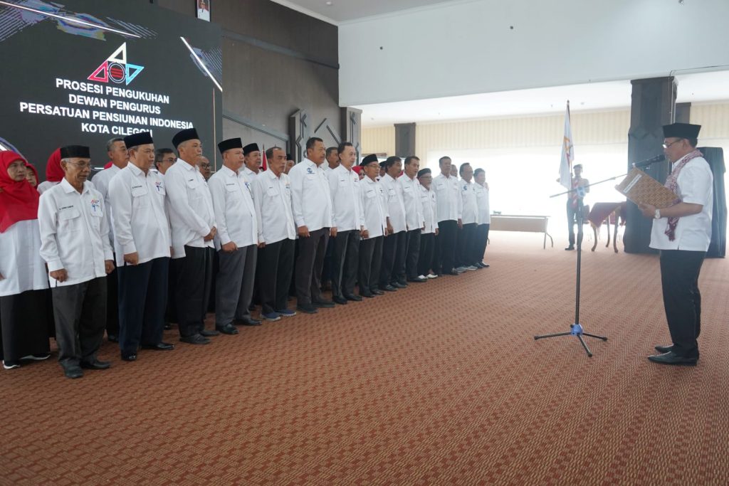 Foto: Pengurus Persatuan Pensiunan Indonesia (PPI) Kota Cilegon periode 2023-2028 secara resmi dikukuhkan oleh Wali Kota Cilegon Helldy Agustian, di Aula Dinas Komunikasi Informatika Statistik dan Persandian Kota Cilegon, Rabu,[8/03/]. Cilegon, (DelikAsia.com) | Pengurus Persatuan Pensiunan Indonesia (PPI) Kota Cilegon periode 2023-2028 secara resmi dikukuhkan oleh Wali Kota Cilegon Helldy Agustian, di Aula Dinas Komunikasi Informatika Statistik dan Persandian Kota Cilegon, Rabu (8/3/2023).