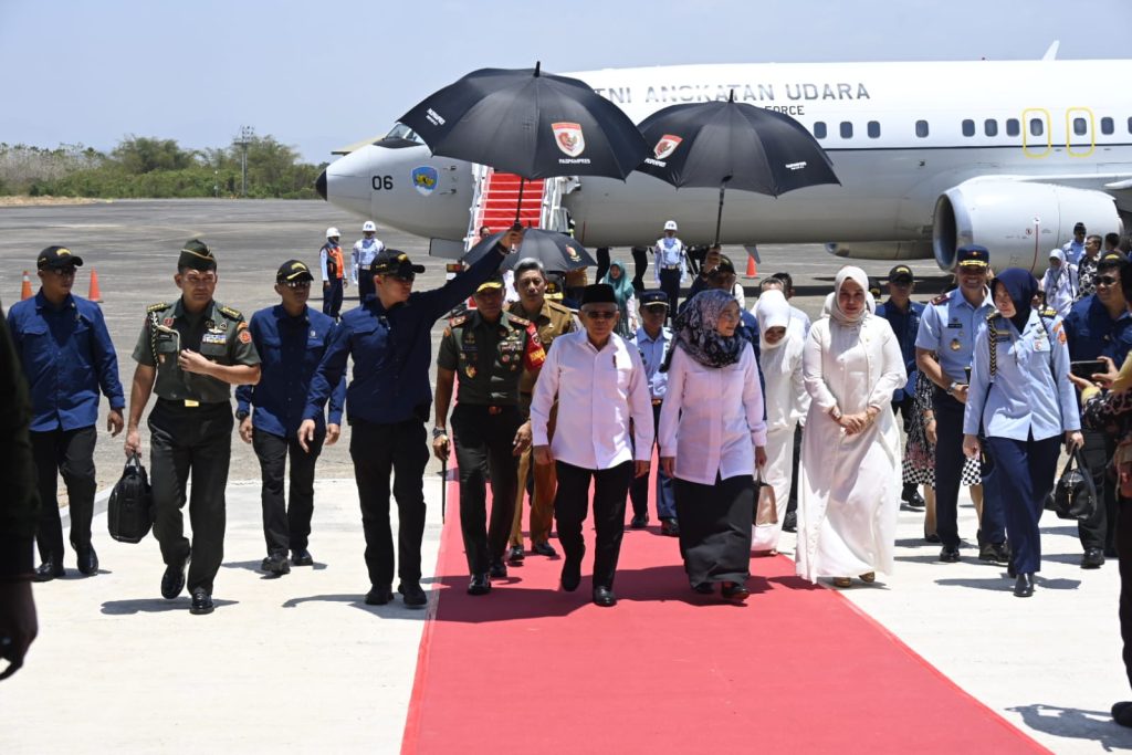 Ketibaan Wapres disambut oleh Pj. Sekretaris Daerah Provinsi Sulsel Andi Muhammad Arsjad dan Anggota Forum Koordinasi Pimpinan Daerah (Forkopimda) Provinsi Sulsel.