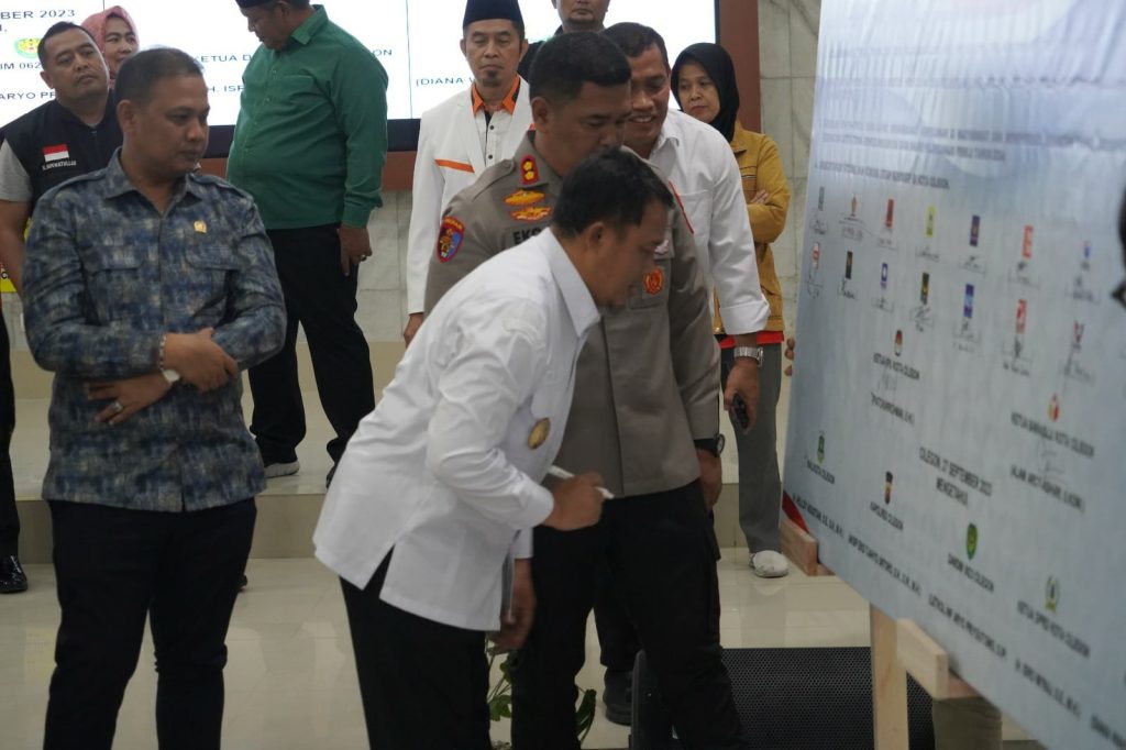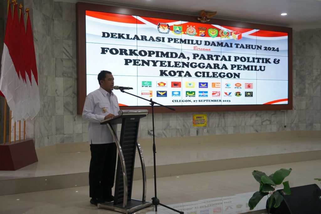 DelikAsia.com, (Cilegon) | Wakil Wali Kota Cilegon Sanuji Pentamarta menfajak seluruh stakehoders dan masyarakat untuk bersama-sama terlibat dalam menciptakan Pemilihan Umum (Pemilu) yang damai pada tahun 2024 nanti. Hal itu disampaikan Sanuji saat menghadiri Deklarasi Pemilu Damai Tahun 2024 yang digelar Polres Cilegon bersama Forkopimda, Partai Politik dan Penyelenggara Pemilu di Gedung Serbaguna Polres Cilegon, Rabu 27 September 2023.