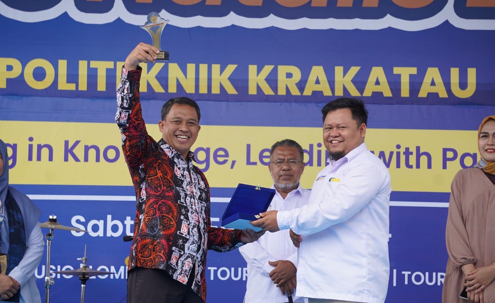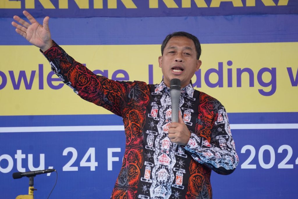 Wakil Wali Kota Cilegon Sanuji Pentamarta, saat menghadiri Diesnatalis Politeknik Krakatau Cilegon ke 25 di halaman kampus Politeknik Krakatau Cilegon, DelikAsia.com, (Cilegon) | Wakil Wali Kota Cilegon Sanuji Pentamarta berharap agar kampus Politeknik Krakatau Cilegon terus maju dan sukses. Hal itu disampaikan Sanuji saat menghadiri Diesnatalis Politeknik Krakatau Cilegon ke 25 di halaman kampus Politeknik Krakatau Cilegon, Sabtu 24 Februari 2024.