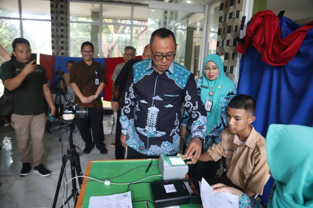 Cilegon, (DelikAsia.com) | Dinas Kependudukan dan Catatan Sipil (DKCS) Kota Cilegon melakukan upaya jemput bola ke SMA, SMK dan Aliyah untuk melakukan percepatan perekaman elektronik. Sekolah pertama yang dikunjungi yaitu SMK Negeri 1 kota Cilegon, Kamis (2/2/2023).