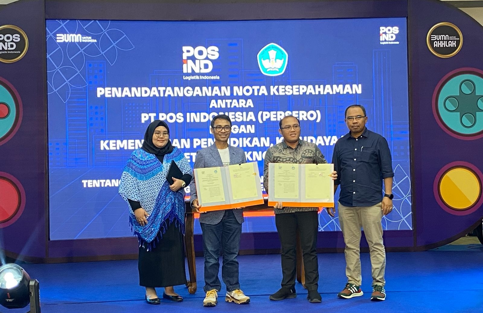 DelikAsia.com, (Bandung) | Kementerian Pendidikan, Kebudayaan, Riset, dan Teknologi (Kemendikbudristek) menjalin kerja sama dengan PT. Pos Indonesia (Persero) untuk mengoptimalkan pemanfaatan produk dan layanan Pos Indonesia dalam mendukung program  bantuan pendidikan. Naskah kerja sama tersebut ditandangani oleh Direktur Utama PT. POS Indonesia (Persero) Faizal Rochmad Djoemadi dan Sekretaris Jenderal Kemendikbudristek, Suharti. Acara seremoni penandatanganan Nota Kesepahaman dengan PT. Pos Indonesia (Persero) dilakukan di Graha Pos Indonesia, Bandung, Kamis (22/02).