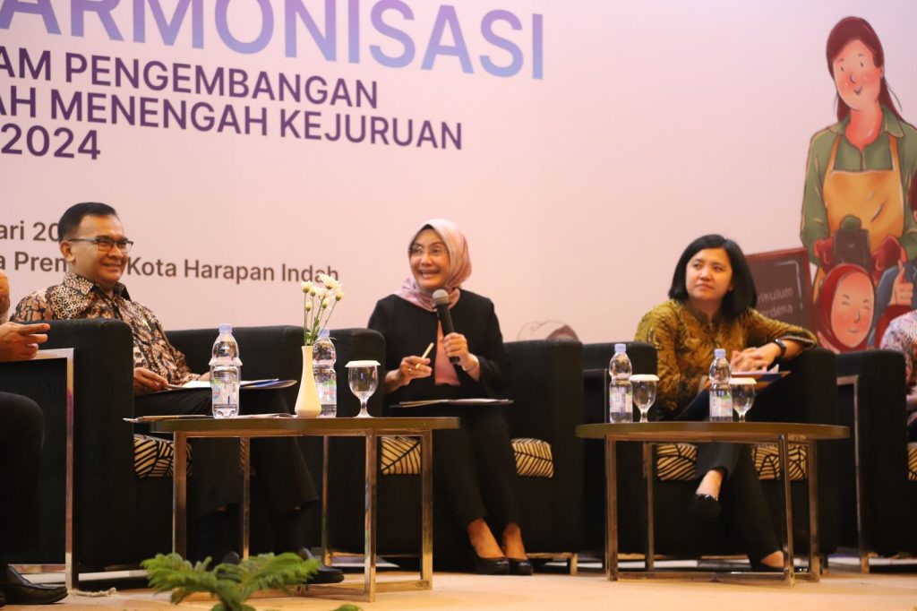 Pada kesempatan ini, Direktur Jenderal (Dirjen) Pendidikan Vokasi, Kiki Yuliati, menyampaikan bahwa kegiatan Sinkronisasi dan Harmonisasi Program Pengembangan SMK Tahun 2024 adalah wadah untuk berdiskusi antarpihak. Program-program yang telah dirancang oleh pemerintah diharapkan dapat memberikan manfaat positif bagi daerah khususnya untuk meningkatkan perekonomian daerah.
