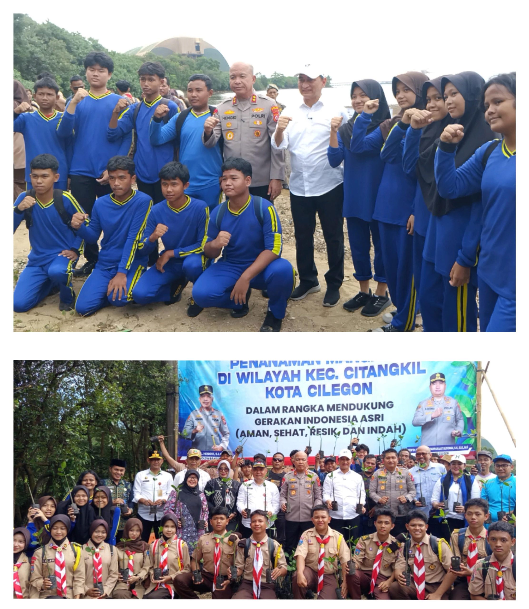 Caption:Aksi hijau Polda Banten: Kapolda foto bersama siswa SMP PGRI 2 Citangkil usai tanam 1.000 mangrove, Jumat (24/04/2026). Cilegon, (Delik Asia) | Sejumlah siswa dari SMP PGRI 2 Citangkil mengikuti kegiatan penanaman 1.000 pohon mangrove yang digelar oleh Polda Banten, Jumat, 24/04/3026. Kegiatan ini merupakan bagian dari upaya penghijauan dan pelestarian lingkungan pesisir di wilayah kota Cilegon dan Provinsi Banten.