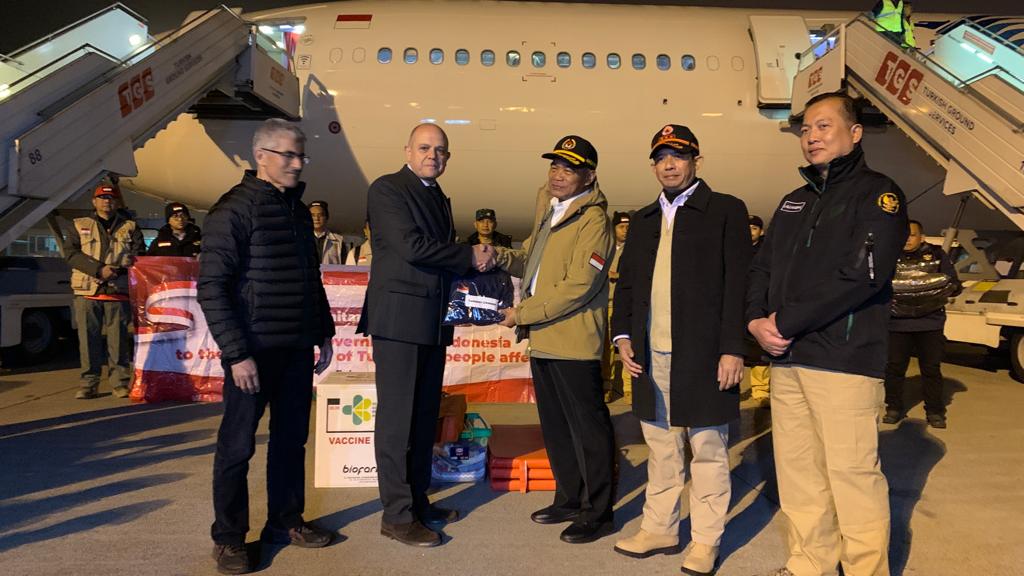 Dukungan logistik ini diterima perwakilan Kementerian Luar Negeri Turkiye Murat Salim Esenli sesaat rombongan pejabat tinggi negara turun dari pesawat Garuda Indonesia. Setelah serah terima bantuan kemanusiaan, Muhadjir menyampaikan, Presiden Joko Widodo mengutusnya untuk mengunjungi dan membawa bantuan tahap ketiga kepada korban bencana gempa bumi di Turkiye.