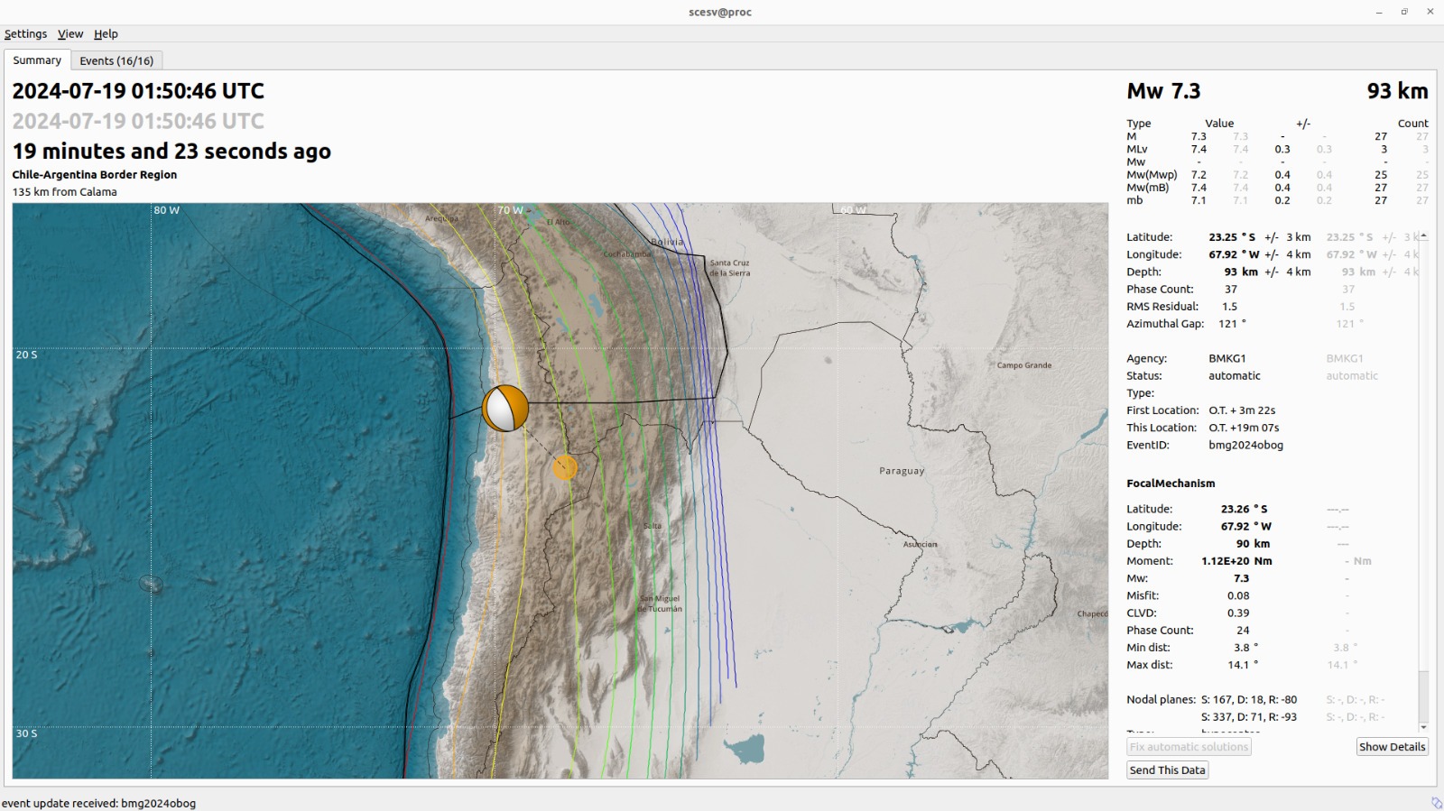 DelikAsia.com, (Jakarta) |  Menurut Keterangan Pusat Gempabumi dan Tsunami BMKG Dr. Daryono, S.Si., M.Si.Hari menerangkan dalam rilis resmi, bahwa pada Jum’at 19 Juli 2024 pukul 08.50.46 WIB wilayah Chile, Amerika Selatan diguncang gempa tektonik.