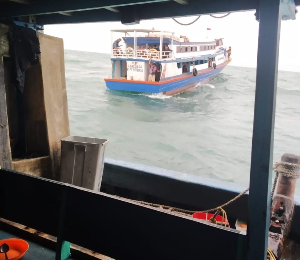 Situasi saat Tim Quick Respon dari Kantor Pangkalan Penjagaan Laut dan Pantai (PLP) Kelas I Tanjung Priok berhasil mengevakuasi seluruh penumpang kapal KM Raksasa sebanyak 65 orang. DelikAsia.com, (Jakarta),–Tim quick respon Kementerian Perhubungan melalui Direktorat Jenderal Perhubungan Laut melalui Kantor Pangkalan Penjagaan Laut dan Pantai (PLP) Kelas I Tanjung Priok berhasil mengevakuasi seluruh penumpang kapal KM Raksasa sebanyak 65 orang.(2/1/2023).