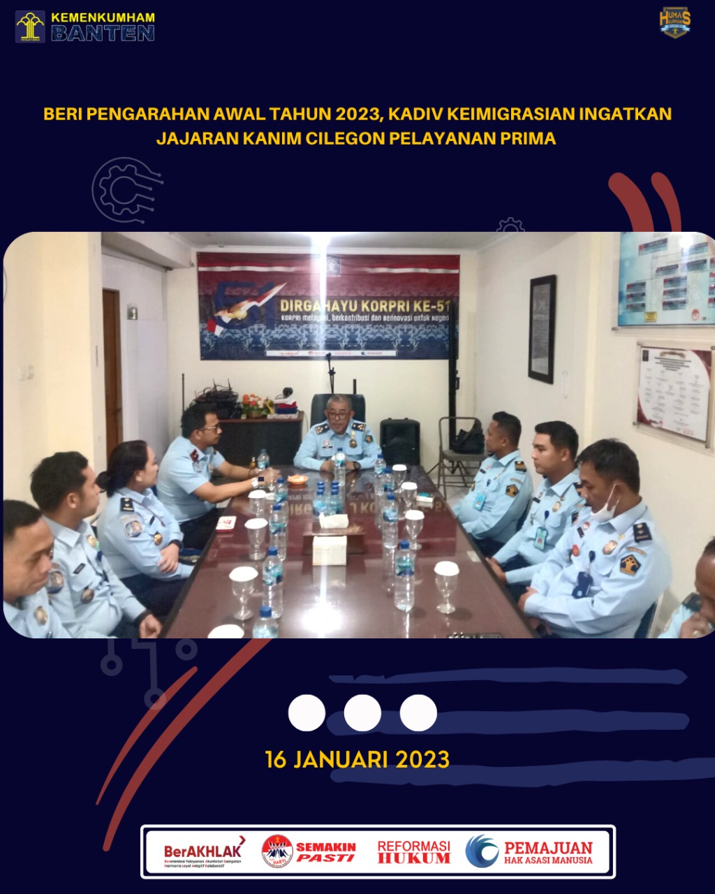 DelikAsia.com, (Cilegon),–Berikan arahan kepada jajaran Kantor Imigrasi Kelas II TPI Cilegon di awal tahun 2023, Kepala Divisi Keimigrasian Ujo Sujoto ingin memastikan jika pelaksanaan tugas dan fungsi Keimigrasian berjalan dengan baik.