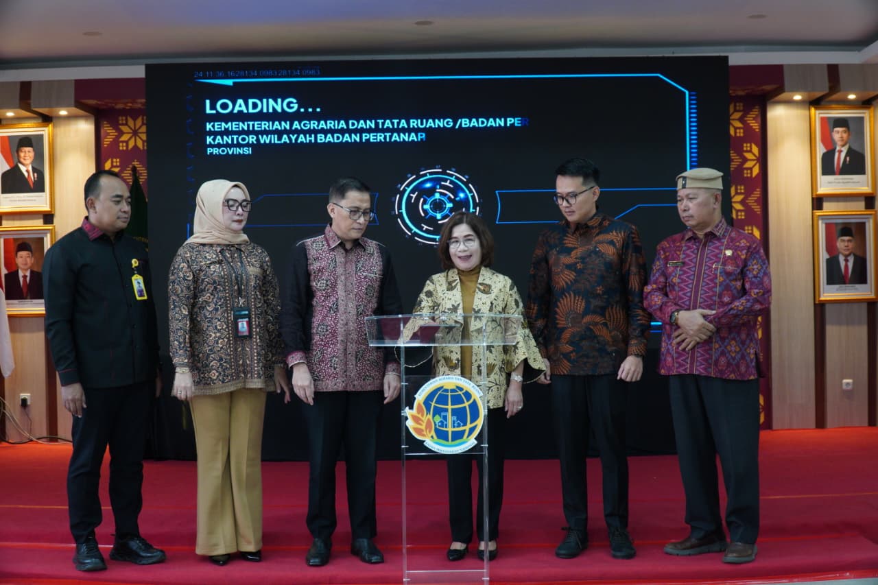 Peluncuran program Peralihan Hak Tanah Elektronik secara simbolis ditandai dengan penekanan tombol launcher oleh Kepala Kanwil ATR/BPN Provinsi Sumatera Selatan, Asnawati, S.H., M.Si.