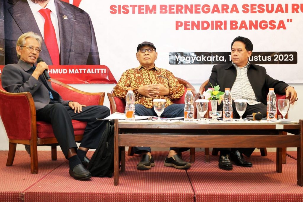 Hal itu terungkap pada acara Fokus Grup Diskusi Membedah Proposal Kenegaraan DPD RI dengan tema ‘Menyempurnakan dan Memperkuat Sistem Bernegara Sesuai Rumusan Pendiri Bangsa’ yang diselenggarakan di UC Resto, Komplek Universitas Gadjah Mada (UGM) Yogyakarta, Jumat (11/8/2023).