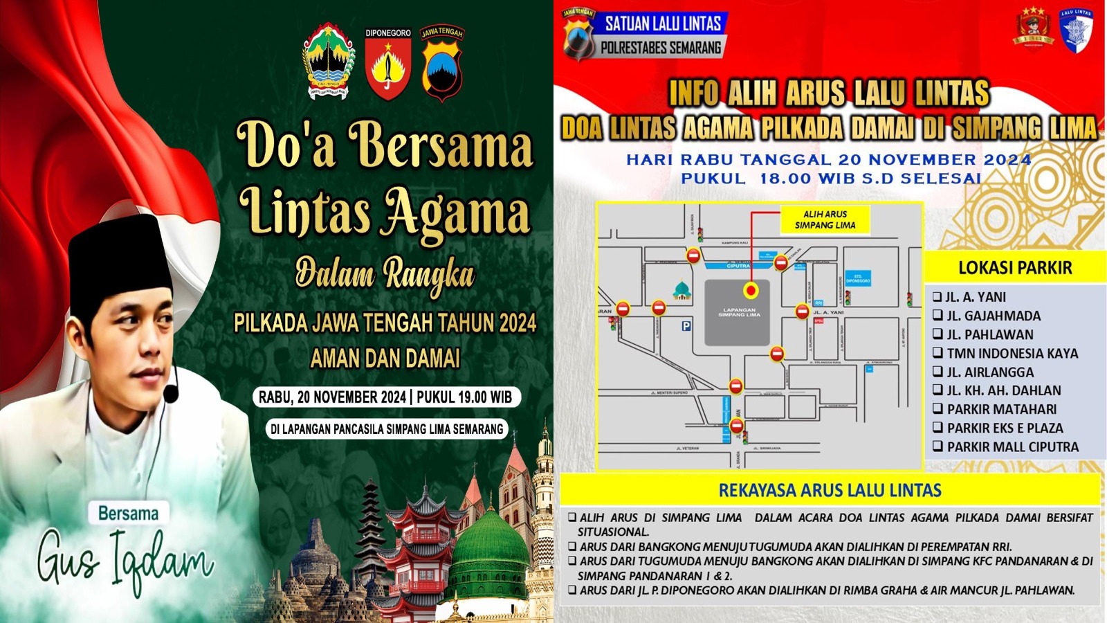 “Dengan rekayasa lalu lintas ini, kami berharap acara Doa Bersama Lintas Agama di Simpang Lima dapat berlangsung khidmat dan kondusif tanpa mengganggu aktivitas masyarakat,” tutup Kombes Artanto.