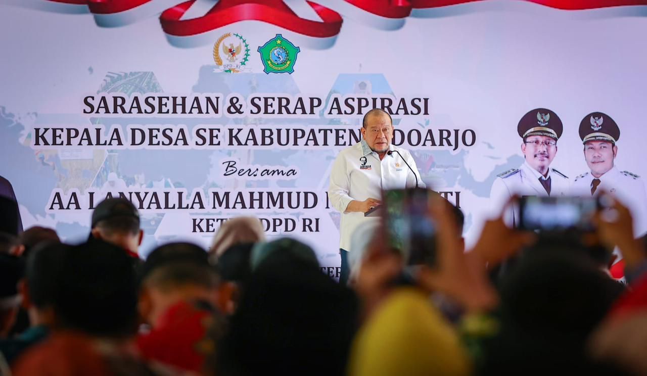 Sidoarjo, (DelikAsia.com) | Ketua DPD RI AA LaNyalla Mahmud Mattalitti menghadiri agenda Sarasehan dan Serap Aspirasi Kepala Desa se Kabupaten Sidoarjo di Sidoarjo, Jawa Timur, Selasa, 8 Agustus 2023. Dalam kesempatan tersebut, LaNyalla banjir aspirasi dari masyarakat.