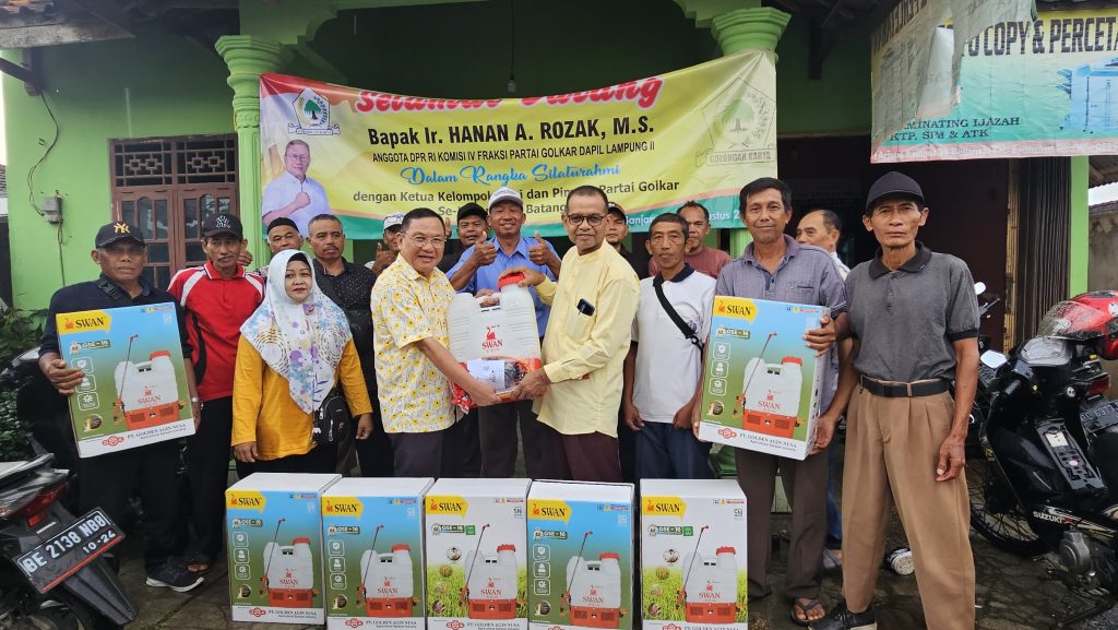 DelikAsia.com, (Lampung Timur) | Anggota DPR RI Hanan A Rozak menyerahkan ratusan tangki semprot elektrik untuk kelompok-kelompok tani yang ada di Kecamatan Batanghari, Sekampung dan Metro Kibang, Kabupaten Lampung Timur.