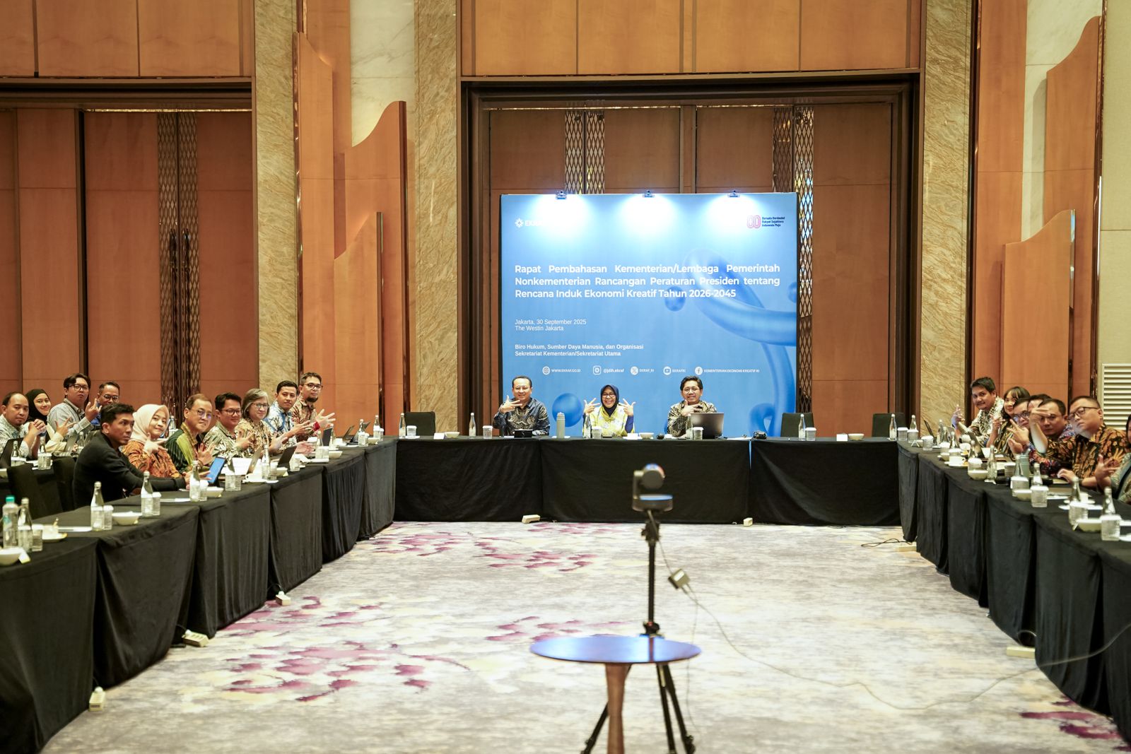 Caption: Sekretaris Kementerian Ekonomi Kreatif, Dessy Ruhati, menghadiri Rapat Panitia Antar Kementerian dalam Penyusunan Rancangan Peraturan Presiden tentang RINDEKRAF Tahun 2026-2045 di Hotel The Westin Jakarta, Selasa (30/09/2025). Delik Asia, (Jakarta) | Kementerian Ekonomi Kreatif (Ekraf) mulai menyusun rencana induk untuk menjadikan ekonomi kreatif sebagai mesin pertumbuhan ekonomi baru menuju Indonesia Emas 2045. Rancangan Peraturan Presiden (RPerpres) Rencana Induk Ekonomi Kreatif (Rindekraf) Tahun 2026-2045, yang dirancang dengan pendekatan people-centered, akan fokus pada pemberdayaan SDM, penguatan usaha, dan pemerataan ekosistem kreatif hingga ke daerah.