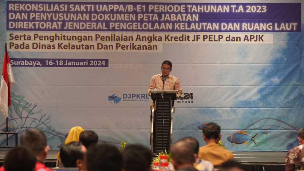 “Penerimaan terbesar sekitar 67 persen diterima dari kegiatan Persetujuan Kesesuaian Kegiatan Pemanfaatan Ruang Laut (PKKPRL)”, ungkap Direktur Jenderal Pengelolaan Ruang Laut (Dirjen PKRL) Victor Gustaaf Manoppo pada Rekonsiliasi SAKTI UAPPA/B E-1 Periode Tahunan TA. 2023 dan Penyusunan Dokumen Peta Jabatan Direktorat Jenderal Pengelolaan Kelautan dan Ruang Laut Serta Penghitungan Penilaian Angka Kredit Jabatan Fungsional PELP dan APJK Pada Dinas Kelautan dan Perikanan yang berlangsung di Surabaya pada 16-18 Januari 2024.
