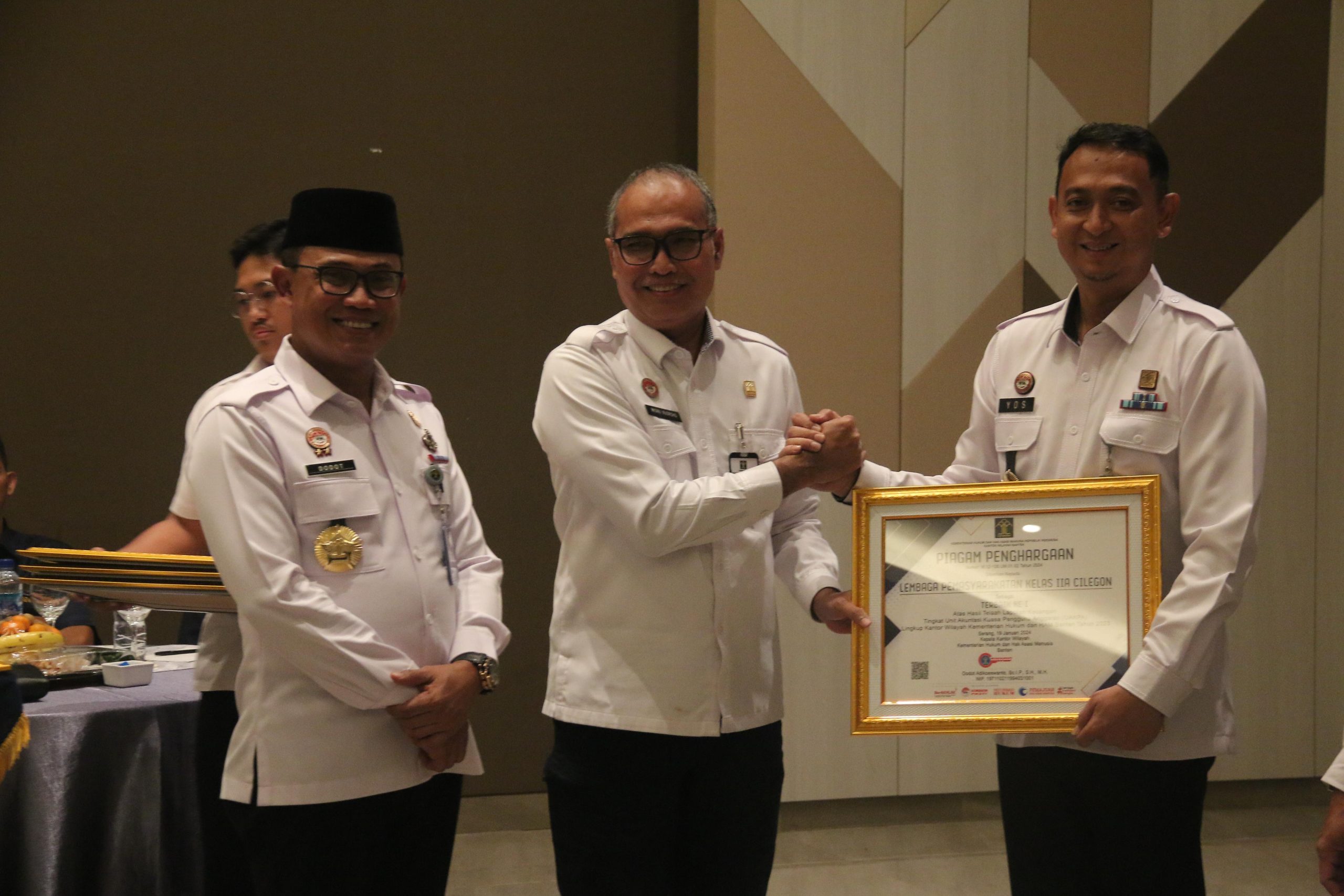 DelikAsis.com, (Anyer) | Pada rangkaian kegiatan Rapat Pra Rekonsiliasi Data Laporan Keuangan dan Barang Milik Negara (BMN) Semester II Tahun Anggaran 2023, Lembaga Pemasyarakatan (Lapas) Kelas IIA Cilegon berhasil meraih prestasi gemilang. Lapas Cilegon dinobatkan sebagai penerima Piagam Penghargaan Terbaik Ke-I atas hasil telaah Laporan Keuangan Tingkat Unit Akuntasi Kuasa Pengguna Anggaran (UAKPA) lingkup Kantor Wilayah Kementerian Hukum dan HAM Banten, Kamis (18/01) pagi.