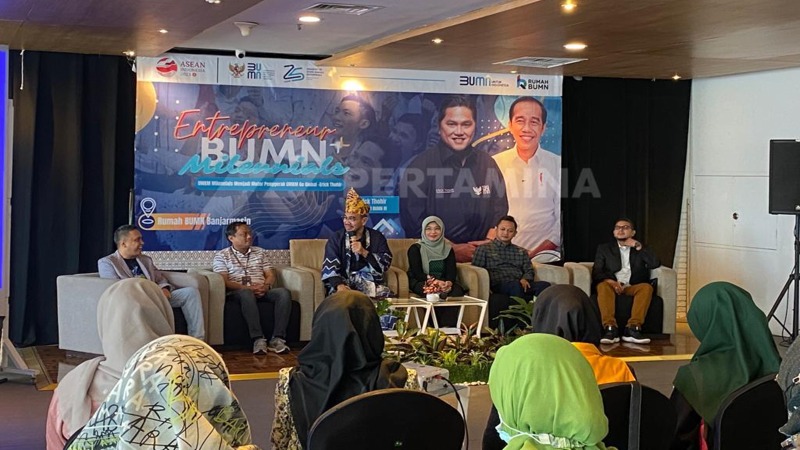 Sebanyak 60 enterpreneur milenial mengikuti diskusi bersama dengan Staf Khusus Menteri BUMN Arya Sinulingga, dalam membuka peluang jejaring antar pelaku UMKM muda sehingga dapat saling terkoneksi. Mereka merupakan UMKM yang bernaung di bawah Rumah BUMN Pertamina Banjarmasin serta binaan BUMN lainnya.(16/04/2023).