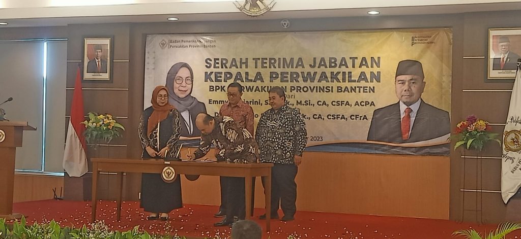 Diketahui, Sertijab Kepala BPK RI Perwakilan Banten dilakukan menindaklanjuti adanya pergantian pimpinan dari Emmy Mutiarini kepada Dede Sukarjo. Penandatanganan berita acara serah terima jabatan dan penyerahan buku Memori Akhir Masa Jabatan disaksikan langsung Anggota V BPK RI Ahmadi Noor Supit, Pj Gubernur Banten Almuktabar dan para Pejabat Forum Komunikasi Pimpinan Daerah (Forkopimda) dan Para Kepala Daerah Bupati/Wali Kota, Para Ketua DPRD, Sekretaris Daerah (Sekda) serta Kepala Inspektur dilingkungan Provinsi Banten.