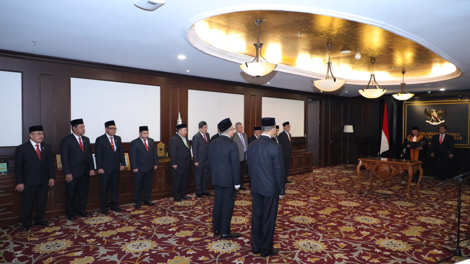 Prof. Dr. H. M. Syarifuddin, S.H., M.H melantik 38 (Tiga Puluh Delapan) Panitera pengganti, pada hari Jumat, 2 Febuari 2024. DelikAsia.com, (Jakarta) | Ketua Mahkamah Agung Prof. Dr. H. M. Syarifuddin, S.H., M.H melantik 38 (Tiga Puluh Delapan) Panitera pengganti, pada hari Jumat, 2 Febuari 2024, bertempat digedung Tower lantai 2, gedung Mahkamah Agung Jakarta.