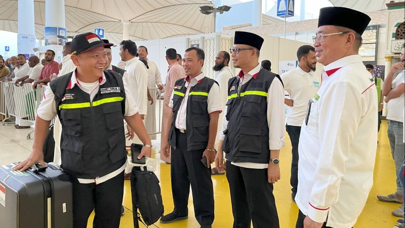 Subhan ikut menjemput kedatangan para petugas di terminal haji King Abdul Aziz International Airport (KAAIA) Jeddah. Hadir juga, Konsul Haji KJRI Jeddah Nasrullah Jasam dan Kadaker Makkah Khalilurrahman.