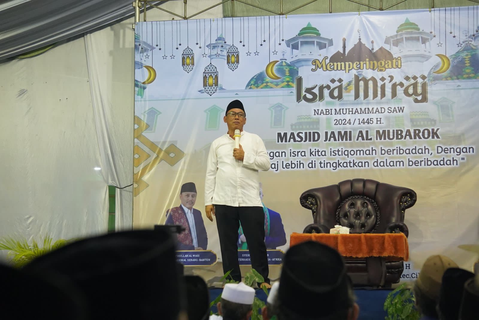 DelikAsia.com, (Cilegon) | Wali Kota Cilegon, Helldy Agustian, turut memeriahkan Peringatan Hari Besar Islam (PHBI) Isra Miraj Nabi Muhammad SAW 1445 H di Masjid Jami Al Mubarok Link, Curug Sekolah Bagendung, pada Kamis, 8 Februari 2024.