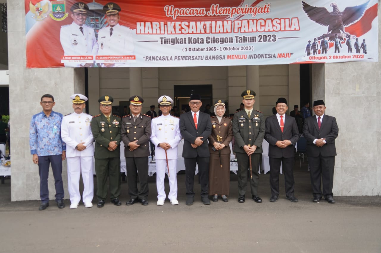 Foto: Upacara Peringatan Hari Kesaktian Pancasila Tingkat Kota Cilegon di Halaman Kantor Wali Kota Cilegon, Senin 2 Oktober 2023 DelikAsia.com, (Cilegon) | Wali Kota Cilegon Helldy Agustian mengajak kepada seluruh Aparatur Sipil Negara (ASN) dan masyarakat untuk memahami nilai-nilai Pancasila. Hal itu merupakan langkah awal dalam mewujudkan Indonesia maju ditengah mempersiapkan generasi emas 2045. Demikian disampaikan Helldy saat menjadi Inspektur Upacara Peringatan Hari Kesaktian Pancasila Tingkat Kota Cilegon di Halaman Kantor Wali Kota Cilegon, Senin 2 Oktober 2023.