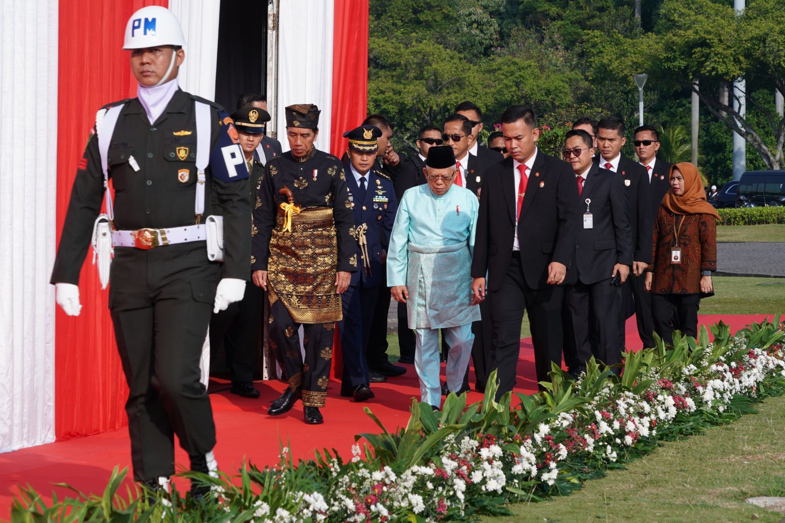 Selain Wapres, turut hadir mengikuti upacara dari Lapangan Monas diantaranya, para Menteri di Kabinet Indonesia Maju, Panglima TNI, Kepala Kepolisian Republik Indonesia, para pimpinan lembaga negara, kementerian/lembaga, dan para tokoh serta tamu undangan lainnya.[DDN/BPMI Setwapres].