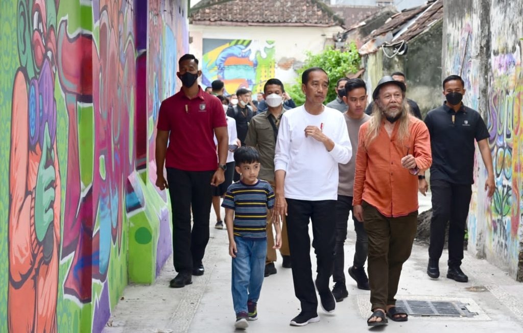 DelikAsia.com, (Surakarta),–Selepas mengunjungi kawasan wisata Solo Safari dan Solo Technopark, Presiden RI Joko Widodo (Jokowi) didampingi Wali Kota Surakarta Gibran Rakabuming Raka dan putranya Jan Ethes mengunjungi Mas Don Art Center yang ada di Kecamatan Serengan, Kota Surakarta, Provinsi Jawa Tengah pada Senin (23/01/2023). Mas Don Art Center merupakan ruang kreatif yang digunakan untuk menyimpan arsip-arsip sejarah para pelopor bangsa dan penunjang kegiatan seni budaya di Kota Surakarta.