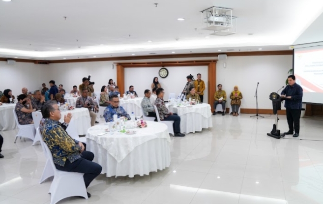 “Komitmen kita ingin sama-sama merapikan, supaya kita punya benteng nasional, karena kedepannya persaingan sesungguhnya ialah persaingan ekonomi, dan kita akan berupaya agar ekonomi Indonesia terus tumbuh secara merata,” ujar Erick.