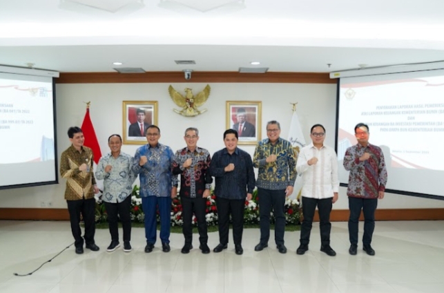 LHP Kementerian BUMN yang merupakan hasil dari audit Laporan Keuangan Kementerian BUMN tahun 2022 dan juga audit dukungan Bagian Anggaran Bendahara Umum Negara Investasi Pemerintah (BA) 999.03 untuk Laporan Keuangan Pemerintah Pusat (LKPP) tahun 2022, diterima secara langsung oleh Menteri BUMN, Erick Thohir, didampingi Wakil Menteri BUMN, Kartika Wirjoatmodjo, dan Sekretaris Kementerian BUMN Rabin Indrajad Hattari.