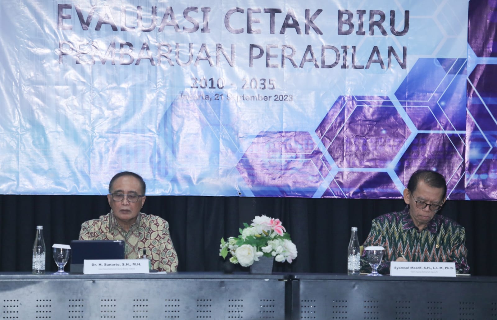 Hal ini disampaikan oleh Wakil Ketua Mahkamah Agung Bidang Yudisial Dr. Sunarto, S.H., M.H dalam acara Evaluasi Cetak Biru Pembaharuan Peradilan 2010-2035, pada hari Kamis, 21 September 2023, bertempat di Novotel Gajah Mada, Jakarta.