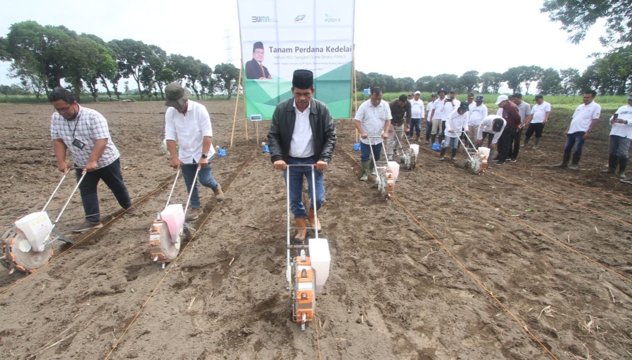 ”Kegiatan ini merupakan salah satu bentuk sinergi BUMN, dimana wujud komitmen PTPN X untuk bersama-sama memajukan tanaman kedelai. Harapannya, melalui tanam perdana kedelai ini yang akan dikembangkan lebih kurang 200 Hektar di area lahan produktif, yang mana untuk pemenuhan swasembada kedelai ini di tahun 2023 swasembada kedelai dapat mencapai 2,5 juta/hektar”,  jelas Tuhu Bangun.